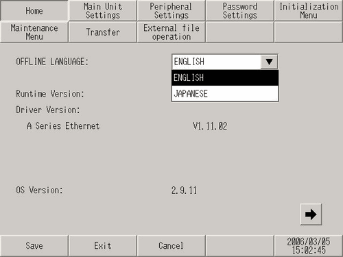 [Exit] saves the changes and restarts the display unit.