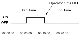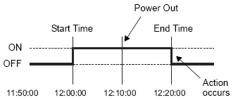 If the Start Time Action is completed and then a power outage occurs, the range is recognized and the End Action is performed at the End Time.