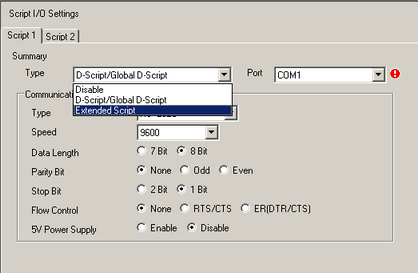 When using an extended script, set [Type] to [Extended Script] and select the appropriate [Port].