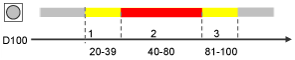 Set Range 1 to 3 as a range with the State 1 (Yellow), and set Range 2 as a range with the State 2 (Red). By setting the priority for the State 2 higher than that of State 1, State 2 is displayed when the value of D100 is between 40 and 80.