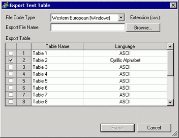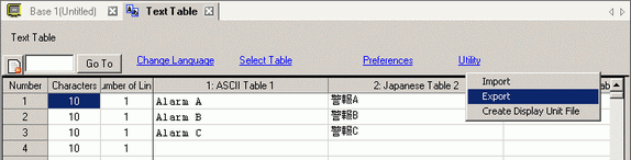 to open the Text Table screen. Select [Export] from [Utility].