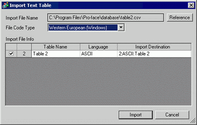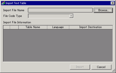 If you select a Text Table file in TXT format (*.txt), the [File Code Type] is fixed as [Unicode]. To import multiple languages at the same time, select [Unicode].