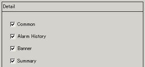 Check the box for all the settings you want to print from [Common], [Alarm History], [Banner], and [Summary].