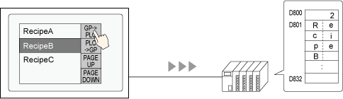 When you transfer enhanced recipes to the device/PLC, you can write the recipe ID and recipe label of these enhanced recipes to a defined address.