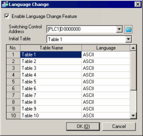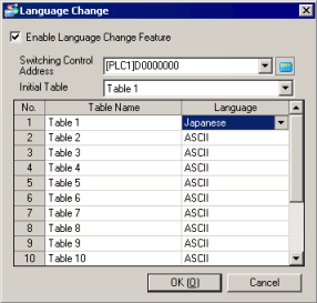Select each table's display language and click [OK (O)]. For example, Table1= Japanese, Table2=ASCII