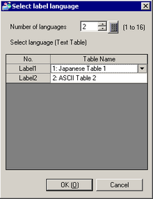 The [Select label language] dialog box works together with the [Language Change] dialog box, available from the [Common Settings] menu's [Text Table] screen.