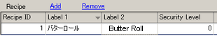 In the [Recipe] list's [Label 1] and [Label 2] fields enter recipe labels in their respective languages.