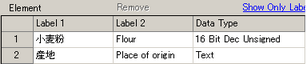 In the [Element] list's [Label 1] and [Label 2] fields enter element labels in their respective languages.