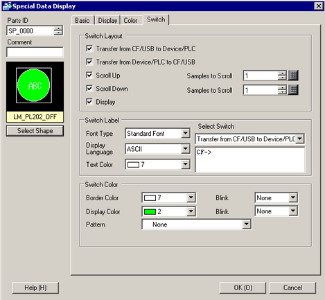 Select to draw a switch that transfers CSV data from external storage to the device/PLC.