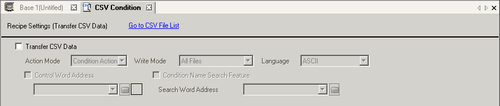 Select the [Transfer CSV Data] check box, define the [Action Mode] as [Condition Action], and select the [Write Mode].