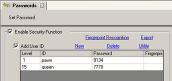 You can login at the set security level when the fingerprint registered in the display unit password settings matches the fingerprint registered in the EZ fingerprint recognition unit database.