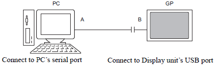 When connecting the USB data transfer cable (CA3-USBCB-01) and the ZC9USCBMB1 cable or standard USB cable (Type A mini B), and in the [Transfer Tool] you click [Receive Project], [Display Unit Information], or [Send Web site], the [Select USB Cable] dialog box will display. Select which USB cable to use.