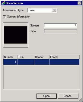 Select the type of screen to open from [Base], [Window], [Keypad], [Image Unit Window], [Logic], or [I/O].