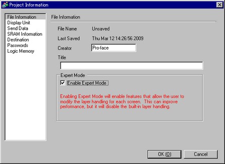 On the [Project Information] dialog box, select [File Information] from the list on the left side.