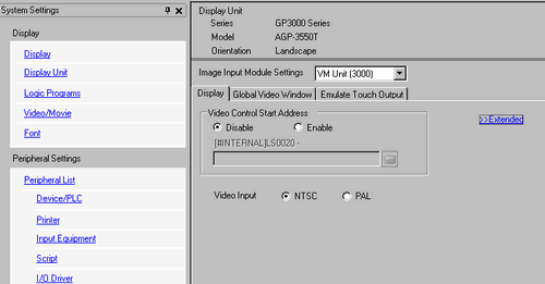 Select the unit installed in [Image Unit] and select [Disable] in the [Video Control Start Address].