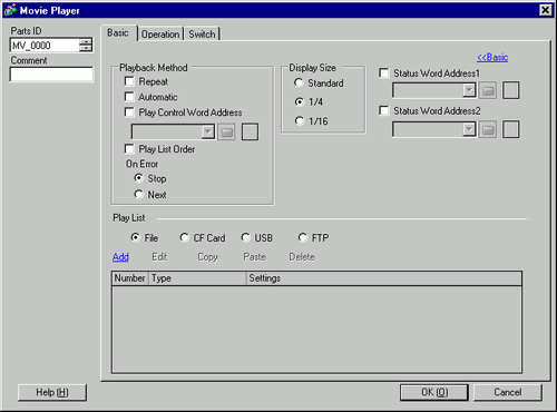 If you want to check the error information, play size, or information on the play position, specify a Word Address for storing the information. Use four Words from the specified address.