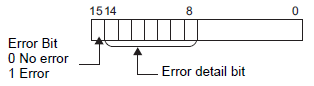 The error bit is ON when an attempt to play a movie failed (for example, because a file does not exist or a connection cannot be established to the FTP server), or when a status error occurs in Movie Player (for example, a because file is corrupted during play).
