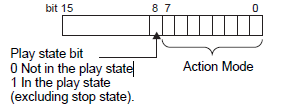 The play state bit indicates that the Play Monitor is actually in the play state. There are no repeat specifications, and even when the play switch is ON, if play is completed to the end, the state changes to state other than play state.