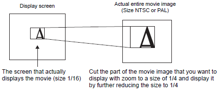 When the display size is [1/4] and the screen size is 1/16 of the movie image