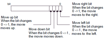 When each allocated bit is turned ON, the movie moves according to the following dots.