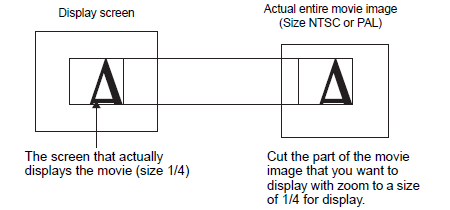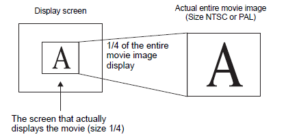 When the display size is [1/4] and the screen size is 1/4 of the movie image