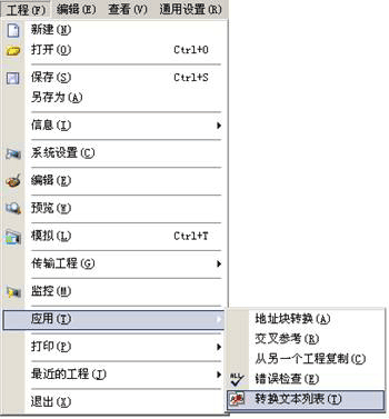 选择[工程(F)] -> [应用(T)] -> [转换文本列表(T)]。 |