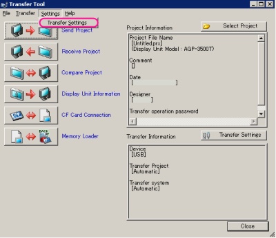 In the [Transfer Tool] dialog box, select the [Setting] menu and click [Transfer Settings]. |