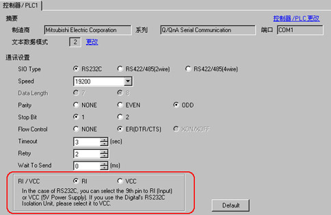 GP-Pro EX(软件)上的RI/VCC设置