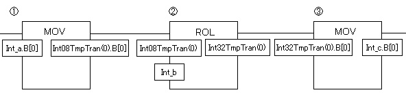将保存在“Int08TmpTran(0)”中的整数的位循环左移“Int_b”位。将运算结果保存到“Int32TmpTran(0)”。