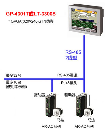 GP4000、GP3000、LT3000系列可通过连接马达驱动器来操作和监控马达。