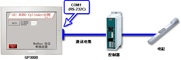 使用适用于GP3000系列的“ROBO Cylinder MODBUS SIO”驱动程序,可连接一个或多个电缸。